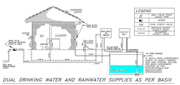 The most crucial storm-water commitments is the amount of roof area being collected into the raintank and the size of the raintank. CLIENTS are responsible (not the builder) to ensure any future pool proposed that is larger than 40,000L has its Basix assessment co-ordinated with the house Basix. The most common problem is the house builder allocating your entire roof area for re-use for the house, and the pool Basix suggesting a portion of the roof is allocated for the pool, which cannot occur. Whatever roof area is allocated on the pool Basix must be deducted from the house Basix, so its doesn’t exceed the actual roof going to the raintanks. The combined storage for both Basix assessments must be provided.